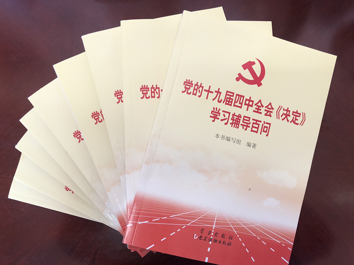 三是辅导书籍全覆盖。校医院党总支给每个党员赠送《十九届四中全会﹤决定﹥学习辅导百问》一书,党员们纷纷表示,要多读书,补足精神之钙,用十九届四中全会精神武装头脑,指导工作,推动实践。