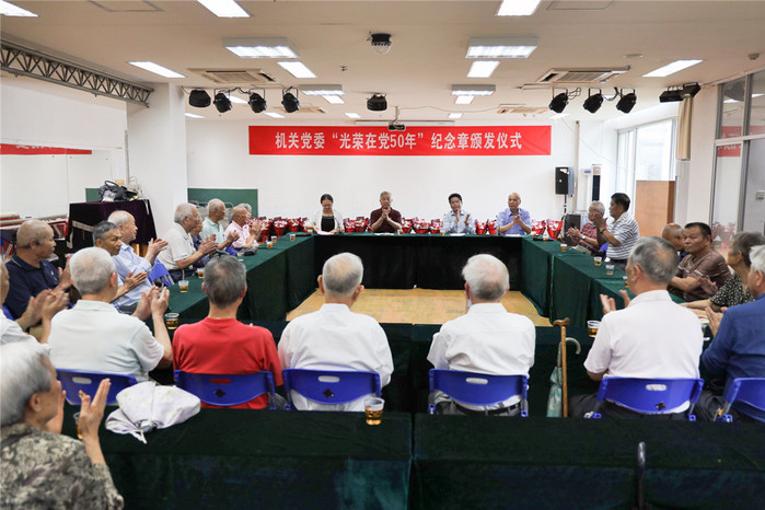 6月24日上午,机关党委在仓山校区隆重举行“光荣在党50年”纪念章颁发仪式。机关党委副书记陈金章、李岩丽,离退休工作办公室主任赵钦,获得“光荣在党5O年”纪念章的党员及原所在单位的党员代表40多人参加了纪念章颁发仪式。颁发仪式由机关党委副书记李岩丽主持。