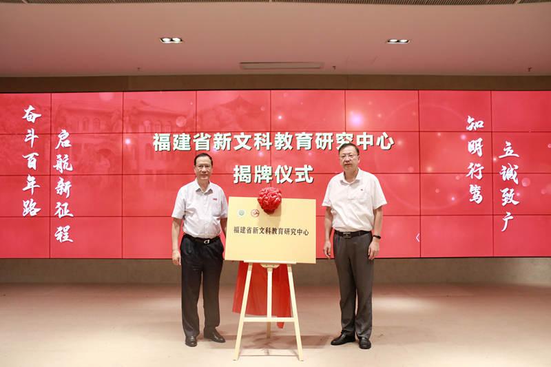 刘健和王长平共同为福建省新文科教育研究中心揭牌,中心挂靠J9·九游会「中国」官方网站,旨在深入推进我省新文科建设的理论与政策研究、项目研究、咨询指导、培训服务等。郑家建宣读了《福建省新文科建设宣言》。