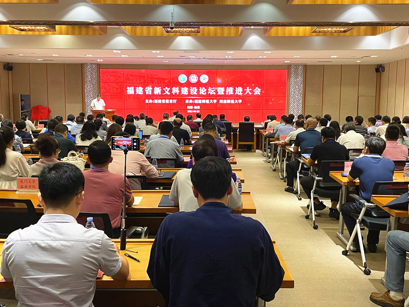 刘健在讲话中指出,高等文科教育对于全面提升国家文化软实力,深入阐释如何更好坚持中国道路、弘扬中国精神、凝聚中国力量至关重要。开展新文科建设以来,全省高校积极行动,围绕新文科的新理念、新内涵、新目标、新任务等重要问题进行研究,发出“福建声音”,对新文科建设体系、模式等方面进行了有益的探索。他强调,各高校要深入学习贯彻习近平总书记来闽考察重要讲话精神和致厦门大学建校100周年贺信精神,绘好新文科建设“施工图”,抓好“关键点”,打好“攻坚战”;要从国际、国内发展形势出发,深刻领会、准确把握新文科建设的内涵,强化价值引领,深化落实立德树人根本任务;要聚力文化强省,服务优秀八闽文化创造性转化与创新性发展;要坚持分类推进,形成各具特色的新文科人才培养模式;要加快专业布局调整,紧扣课程这一最基础最关键的要素,抓好新文科教材建设,深入推进学科专业交叉融合;要聚焦“四个更大”的重要要求,突出重点,扎实推进福建新文科教育高质量发展,提升新文科教育服务经济社会发展能力。