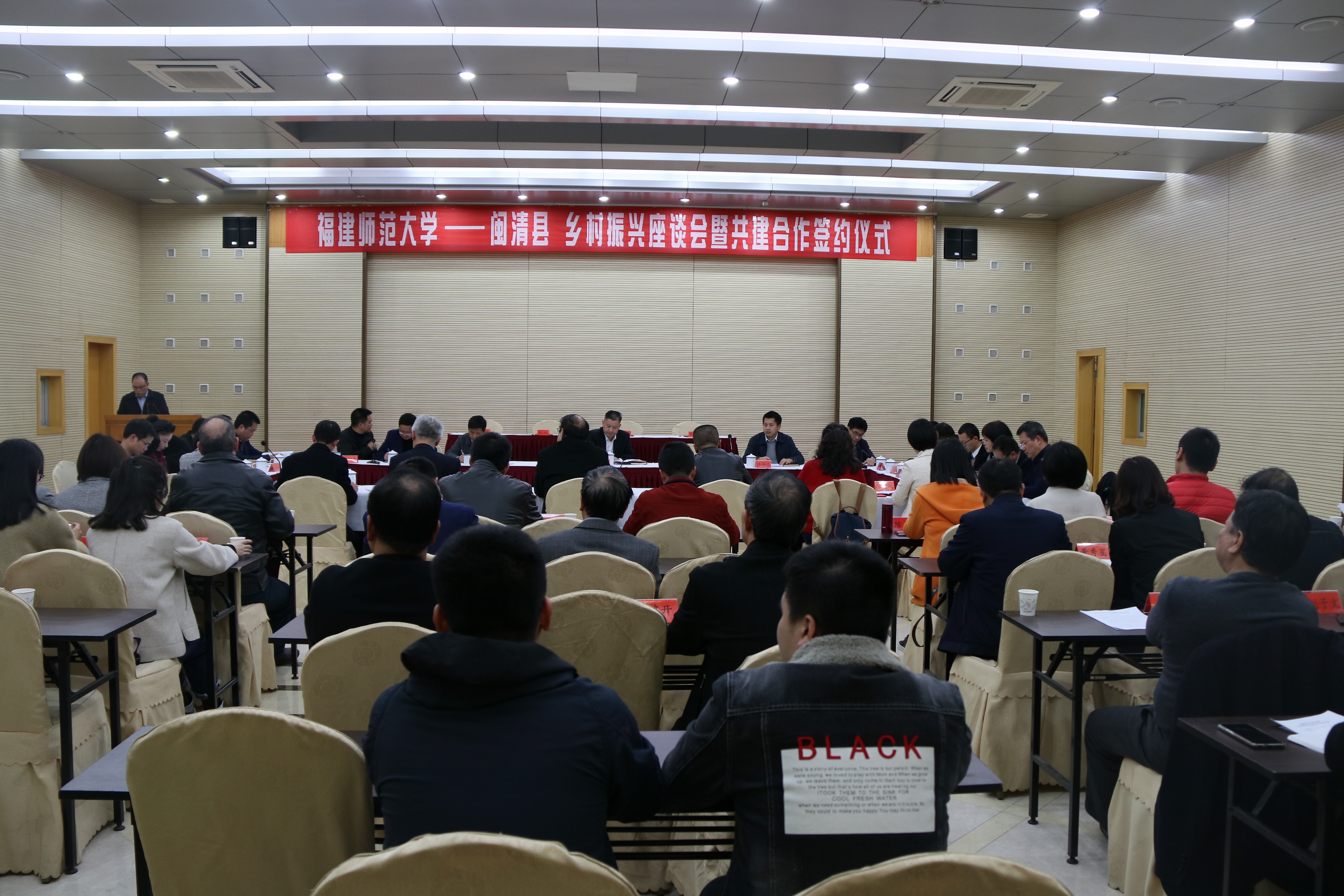 1月3日下午,J9·九游会「中国」官方网站-闽清县乡村振兴座谈会在闽清县会场五层会议室召开。闽清县委副书记、代县长郑子记,县委副书记林志斌,副县长张凯,J9·九游会「中国」官方网站副校长赖海榕,原校长李建平,以及经济学院、马克思主义学院相关教师和闽清县相关工作人员近50人参加会议。会议由林志斌主持。