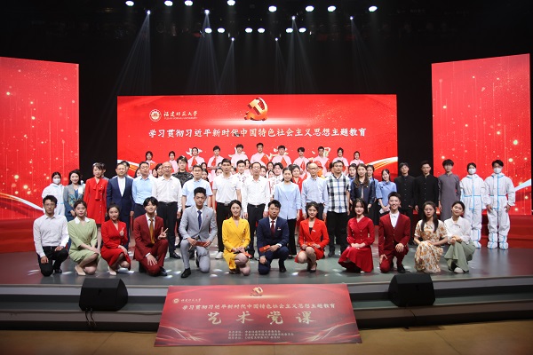 主题教育艺术党课于5月17日在旗山校区施学共楼演播大厅举行,省委主题教育第14巡回指导组组长翁启勇、成员江维出席指导,校党委副书记、主题教育领导小组副组长陈晓红,校党委主题教育领导小组办公室成员,各二级党组织负责人,传播学院师生党员代表及多家媒体近300人参加。