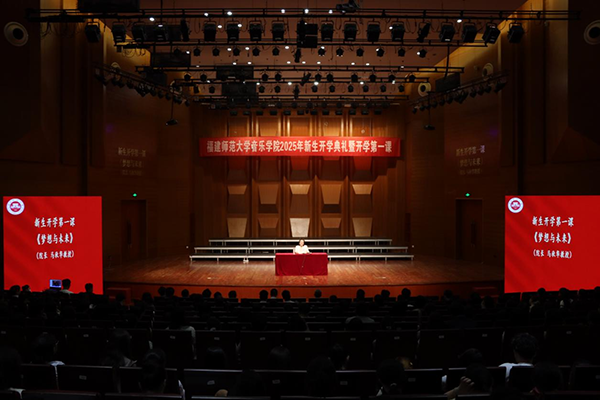 9月8日,音乐学院2025级新生开学典礼暨开学第一课在音乐厅举行。学院党政领导班子、各系部负责人、各科室负责人、教师代表、辅导员以及2025级全体新生和部分家长参加。典礼由学院党委副书记杜成煜主持。