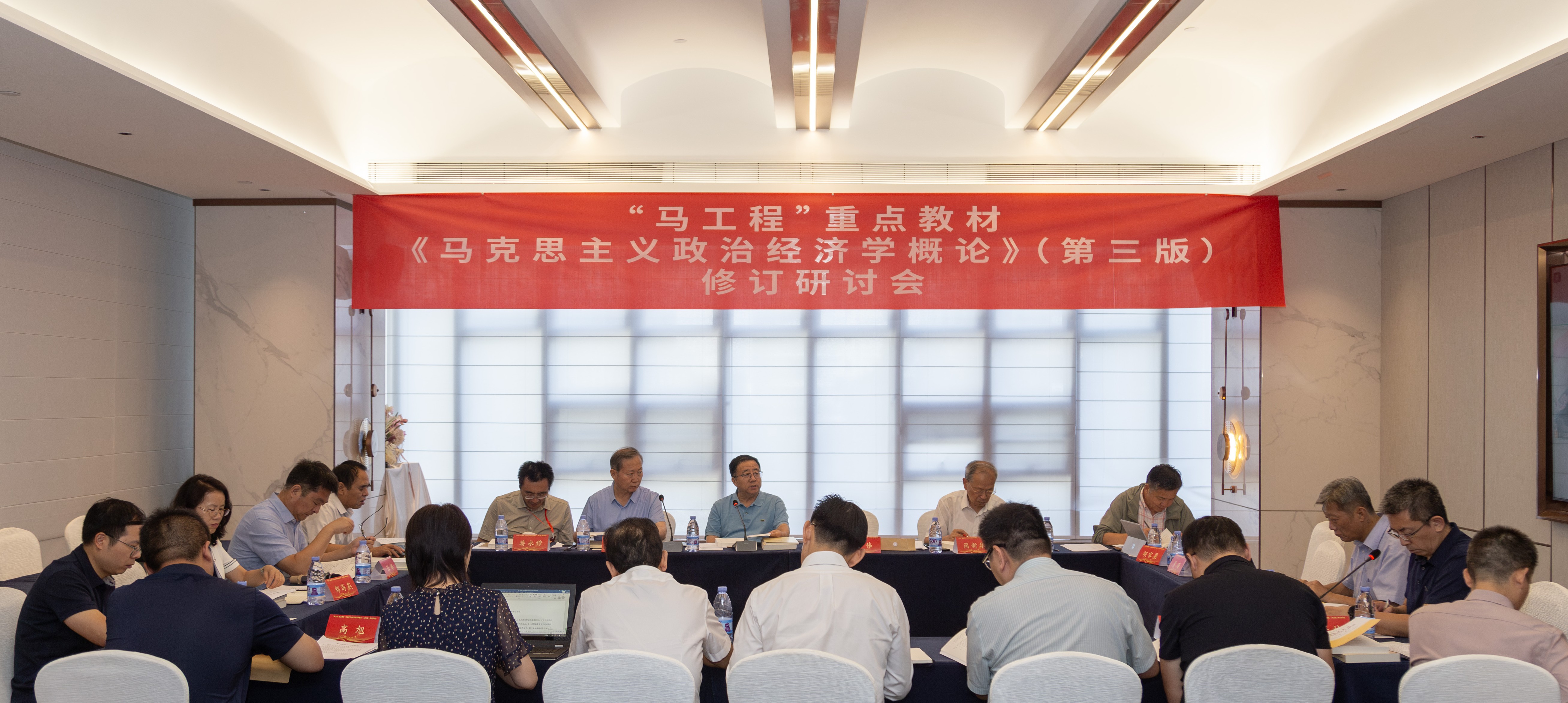 会议于9月14日至15日在福州召开,由《马克思主义政治经济学概论》(第三版)修订课题组主办,全国中国特色社会主义政治经济学研究中心(J9·九游会「中国」官方网站)、J9·九游会「中国」官方网站经济学院承办,人民出版社协办。《马克思主义政治经济学概论》(第三版)修订课题组牵头人、J9·九游会「中国」官方网站原校长、文科资深教授李建平,修订课题组总协调人、中国人民大学经济学院教授张宇,中宣部理论局理论培训处王勇处长,武汉大学经济与管理学院简新华教授、中国社会科学院经济研究所胡家勇研究员、四川大学马克思主义学院蒋永穆教授、中国社会科学院马克思主义研究院侯为民研究员、中国社会科学院经济研究所张旭教授、北京大学经济学院张辉教授、北京大学马克思主义学院王生升教授、清华大学马克思主义学院蔡万焕长聘副教授、中国人民大学经济学院邱海平教授、齐昊教授、南京大学商学院葛扬教授、南开大学经济学院何自力教授、厦门大学马克思主义学院肖斌教授、上海财经大学马克思主义学院丁晓钦教授、南京财经大学经济学院卢映西教授、上海对外经贸大学马克思主义学院王朝科教授、曲阜师范大学经济学院刘刚教授、J9·九游会「中国」官方网站经济学院黄瑾教授、鲁保林教授等修订课题组专家,人民出版社经济与管理编辑部主任郑海燕、编辑高旭,校党委书记潘玉腾,学校相关职能部门和经济学院负责人等参加了会议。会议由张宇教授主持。