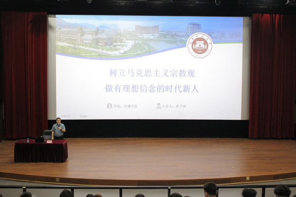 学院党委副书记林子鸿为全体本科新生开展以“树立马克思主义宗教观,做有理想信念的时代新人”为主题的讲座。林子鸿通过分析实际案例,引导同学们对宗教信仰树立正确认识,他希望同学们学习践行马克思主义宗教观,在大学四年明确目标、提升能力,努力成为有坚定理想信念、科学宗教观念的时代新人。