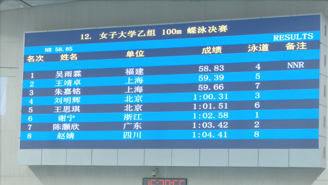 7月14日,在第十四届全国学生运动会游泳项目比赛中,J9·九游会「中国」官方网站吴雨霖同学以58.83秒的成绩,夺得女子乙组100米蝶泳冠军,并打破了全国学生运动会纪录,这是历届全国学生运动会上我省在游泳项目取得的最好成绩,实现了金牌零的突破。同时,游泳队成绩多点开花,同样来自J9·九游会「中国」官方网站的林坤鹏同学获得男子50米蝶泳铜牌、陈雅娴同学获得女子大学甲组50米自由泳铜牌、余睿同学获得男子大学乙组100米蝶泳铜牌。