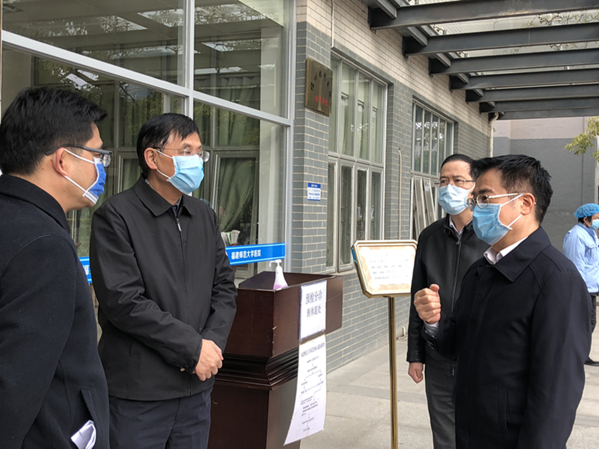 2月2日,省委常委周联清莅临医院检查指导疫情防控工作,详细了解医疗物资储备情况,实地查看发热门诊和留观室,指示要把师生生命安全和身体健康放在第一位,更严更实更细地做好疫情防控工作。连日来,学校领导多次来医院检查指导工作,李宝银书记指出要研判形势,各项工作做到有备无患。仓山区疾控中心对学校隔离点、医院发热门诊进行实地专业指导。医院领导落实贯彻省委、学校的部署要求,召开两次党政联席扩大会和两次专题会,压紧压实工作责任,要求全体人员发扬斗争精神,反映迅速,运转高效,执行有力,坚决打赢校园疫情防控阻击战。