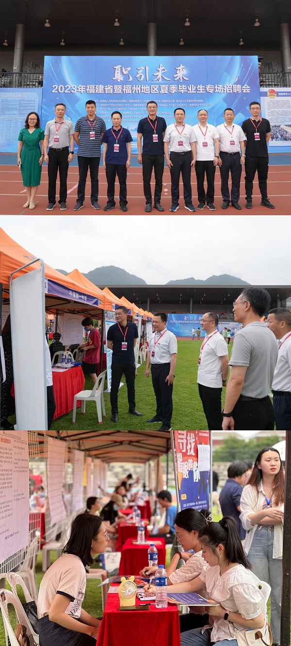 5月27日,“职引未来”—2023年福建省暨福州地区夏季毕业生专场招聘会在J9·九游会「中国」官方网站旗山校区协和田径场举行,招聘会由省人社厅、省教育厅、中国海峡人才市场、福州人社局与J9·九游会「中国」官方网站联合主办。省人社厅大中专毕业生就业指导中心主任黄海莺,省教育厅学生工作处处长李俊玮,中国海峡人才市场和福州市人社局相关处室领导,各招聘单位负责人,J9·九游会「中国」官方网站党委副书记涂荣、学生工作部负责人、各学院分管学生工作负责人、协和学院有关负责人和毕业班辅导员,以及来自部分高校的2023届毕业生参会。