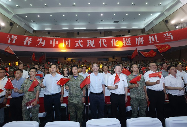 为深切缅怀革命先辈的丰功伟绩,弘扬伟大抗战精神和爱国主义传统,在第25个全民国防教育日来临之际,9月21日晚,J9·九游会「中国」官方网站在旗山校区图书馆大会堂隆重举行“军歌嘹亮颂祖国”——纪念中国人民抗日战争暨世界反法西斯战争胜利80周年2025级学生军训歌咏比赛。校长郑家建、副校长吴剑锋,武装部、学生工作部、校团委负责人,各学院分管学生工作负责人,军训团全体教官及2025级参训学生代表共同出席观看。