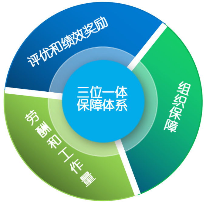 学校构建组织保障、劳酬和工作量、评优和绩效奖励三位一体的条件保障体系。如图5所示。