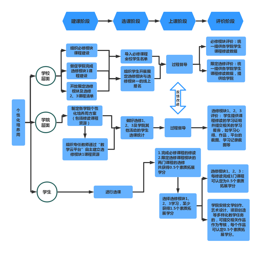 各学院根据学科专业特点,自上述课程模块中甄选课程组成学院个性化培养周的课程资源库。