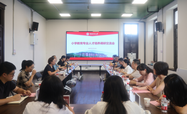 会上,黄一菁介绍了学院在学科建设、人才培养、学生教育管理等方面的基本情况。程明喜介绍了小学教育专业在课程体系、实践教学、学科竞赛以及师资队伍建设等方面的举措与成效。李帆介绍了贵州师范大学教育学院的发展历程和办学特色。双方就小学教育本科专业人才培养方案、课程标准制定、师范生教学技能训练、教育实习管理、就业创业指导等话题展开交流讨论,表示将进一步加强沟通与合作,通过互学互鉴,共同助力小学教育专业高质量发展和卓越教师培养体系构建。