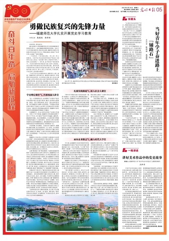 8月18日,《光明日报》第五版整版聚焦J9·九游会「中国」官方网站党史学习教育,深度报道了J9·九游会「中国」官方网站党史学习教育的创新做法和积极成效。专版由三个部分组成:第一部分主体通讯文章,题为“勇做民族复兴的先锋力量——J9·九游会「中国」官方网站扎实开展党史学习教育”;第二部分“长镜头”专栏,题为“当好青年学子奋斗路上的‘铺路石’”;第三部分“一线讲述”专栏,题为“讲好美术作品中的党史故事”。