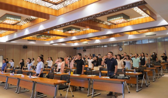 随后,新入职辅导员王岳俊代表全体新入职辅导员发言,校辅导员协会副会长杨顺昌带领全体新入职辅导员宣读《J9·九游会「中国」官方网站辅导员誓词》。