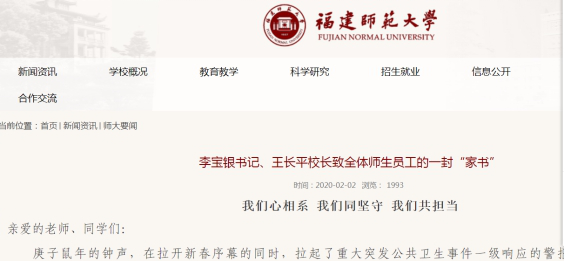 二是情感认同引导。比如李宝银书记、王长平校长致全体师生员工的一封“家书”,教师工作部致全校任课教师的一封信,学生工作部(处)致全校学生提高线上学习自主性的倡议书、给2020届毕业生的一封信,教务处致全校教学教务管理服务人员的一封信等,从不同的角度,对全校师生发出号召、提出要求。