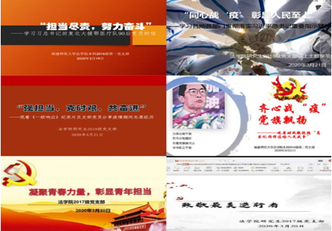 近日,法学院各学生党支部利用新媒体平台,开展一系列线上主题学习会,引导学生增强爱国情怀和责任担当。