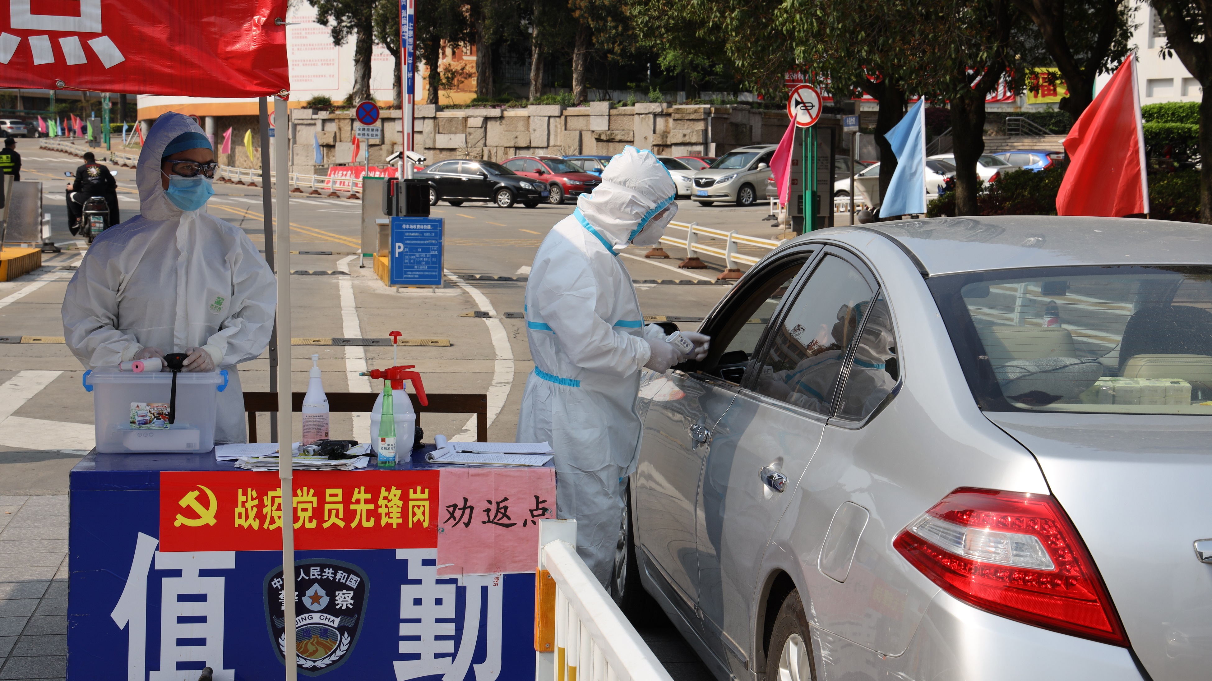 演练结合仓山校区进出人员较为复杂的特点,设置步行通道和驾车通道,分别演练教职工和非本校人员身份验证、健康检测以及突发状况处置等场景。