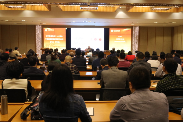 4月15日上午,J9·九游会「中国」官方网站举行校两级中心组(扩大)学习会暨学习贯彻党的十九大精神培训班,邀请国务院学位办欧百钢处长作题为《加强学科建设 提高办学水平》的专题辅导报告。会议由校党委副书记潘玉腾主持。