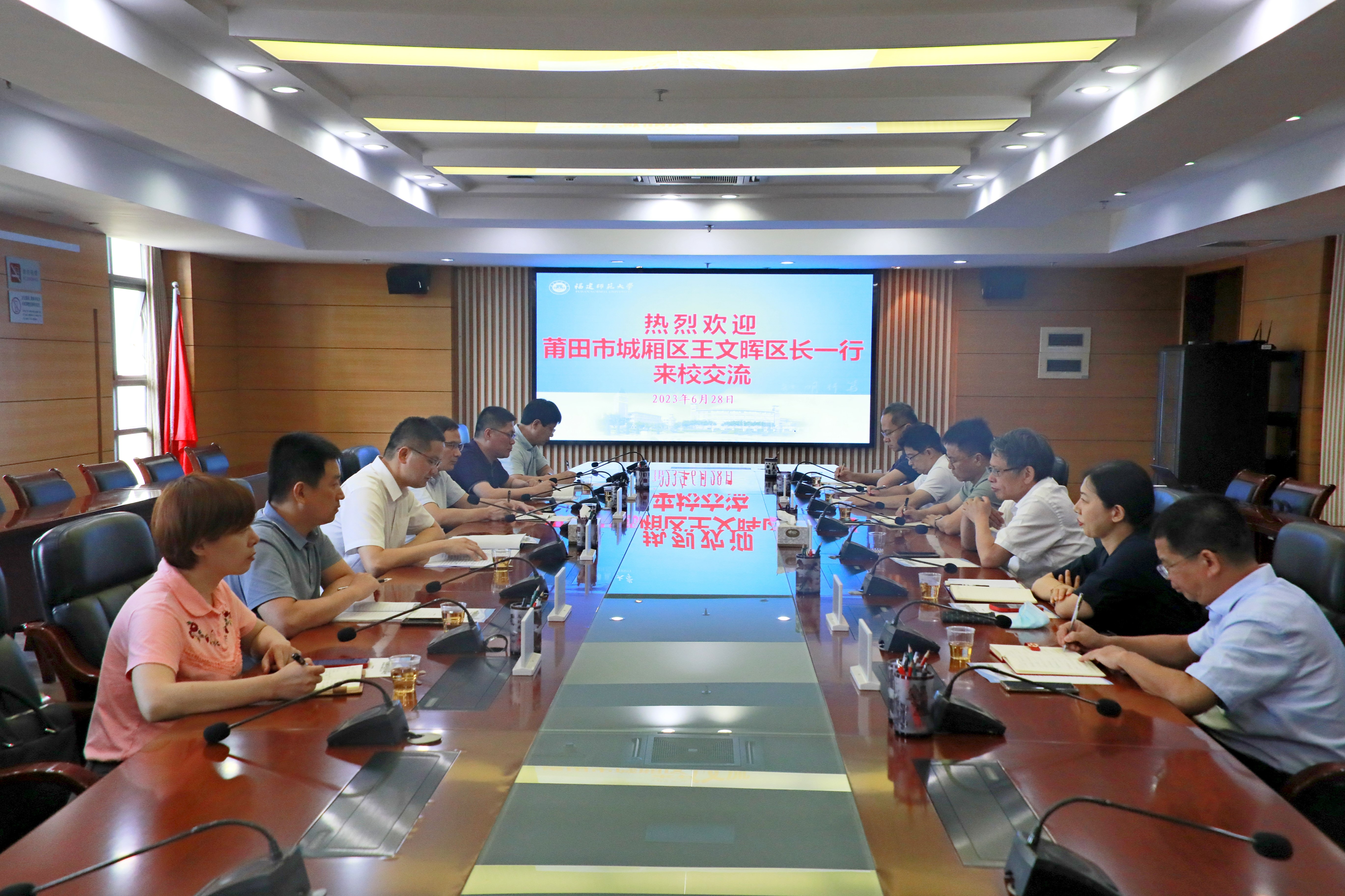 6月28日,莆田市城厢区区委副书记、区长王文晖一行来J9·九游会「中国」官方网站调研交流。副校长陈庆华,党政办公室、科学技术处、产教融合发展中心、教师教育学院和环境与资源学院、碳中和现代产业学院负责人参加调研座谈。座谈会上,双方围绕建立对接协同机制、推动科研成果转化、赋能提速产业发展、强化人才交流培训等校地合作方面进行了深入交流,表示将进一步拓展合作领域,深化务实合作,着力推动双方合作取得新成果、迈上新台阶,实现互利共赢发展。(党政办公室)