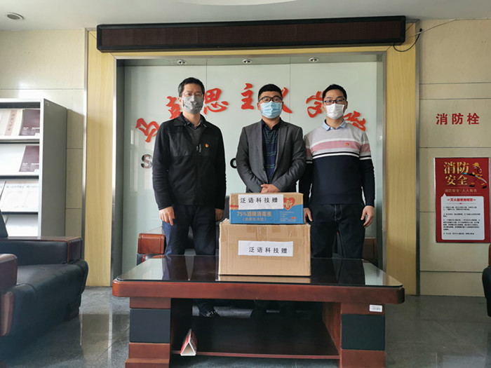 4月13日,重庆泛语科技有限公司向马克思主义学院捐赠2000个医用口罩和1箱消毒液,助力学院疫情防控工作。重庆泛语科技有限公司是重庆维普资讯有限公司旗下控股公司,专注于学术大数据应用产品的研发。在此次抗击新冠肺炎疫情中,重庆泛语科技有限公司多方筹集抗疫物资,捐赠高校以帮助学校复学。马克思主义学院对重庆泛语科技有限公司在疫情防控工作关键时期慷慨解囊、雪中送炭的义举表示衷心的感谢,表示将把捐赠的防疫物资充分利用在防疫一线。(马克思主义学院)