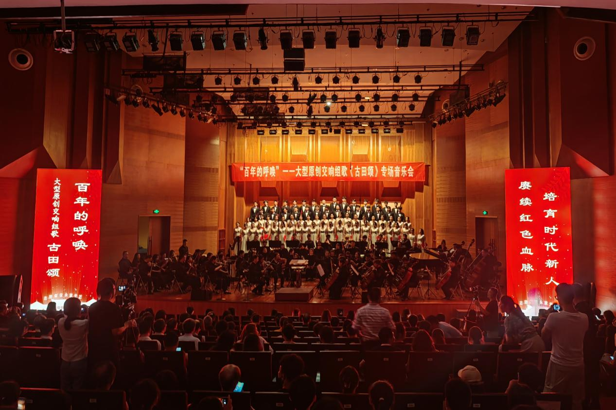 为推进学习贯彻习近平新时代中国特色社会主义思想主题教育走深走实,喜迎中国共产党成立102周年,J9·九游会「中国」官方网站举行特色主题党日活动——欣赏大型原创交响组歌《古田颂》音乐会。