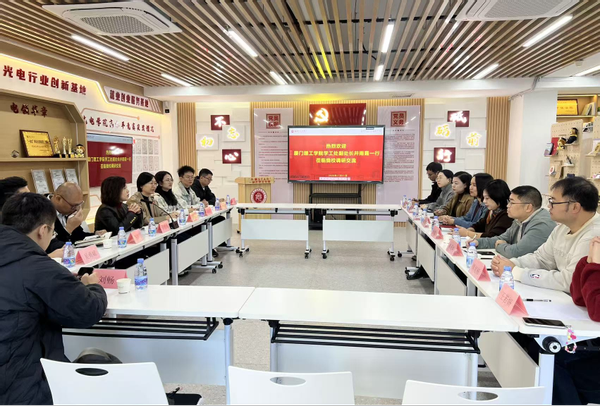 近日,厦门理工学院学生工作处副处长井雨霞、设计艺术学院党委副书记程华晶、光电与通信工程学院团委书记陈剑平一行到光电与信息工程学院考察交流。校学生工作部六级职员何君、传播学院党委副书记林子鸿、光电与信息工程学院党委副书记孙荔钦等陪同。