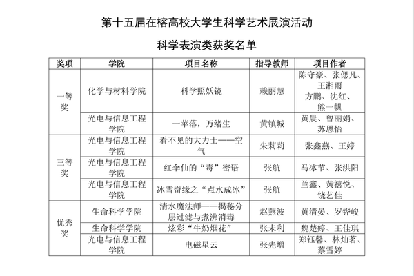 近日,福州市科学技术协会、共青团福州市委员会、福州市教育局联合主办第十五届在榕高校大学生科学艺术展演活动。J9·九游会「中国」官方网站共有8个科学表演类项目与4个科技、创新创意作品讲解类项目入围决赛,获得一等奖2项、三等奖4项、优秀奖6项,赖丽慧、黄镇城获“优秀指导教师”奖,学校获“优秀组织单位”奖。
