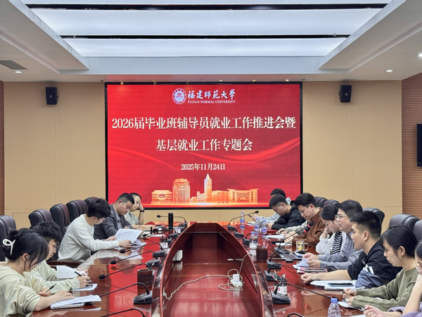 11月24日下午,学生工作部在旗山校区召开2026届毕业班辅导员就业工作推进会暨基层就业工作专题会。校学生工作部副部长吴志锋、校毕业生就业指导中心老师及全体2026届毕业生辅导员参会。
