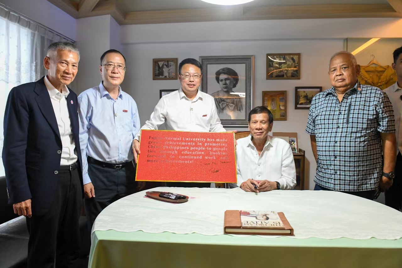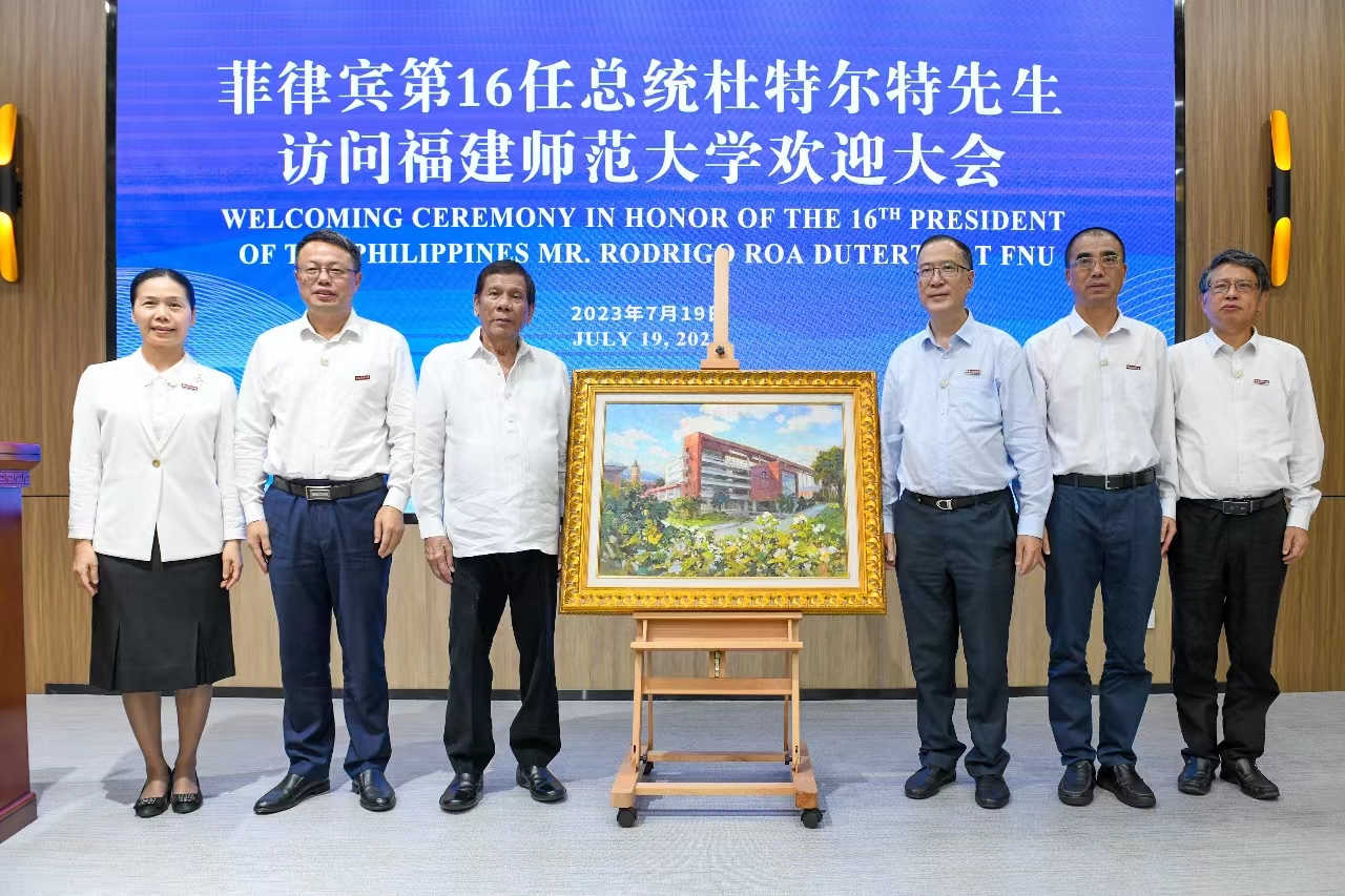 7月19日,菲律宾共和国第16任总统罗德里戈·杜特尔特莅校访问。杜特尔特参加了以其母索莱达·杜特尔特命名的纪念大楼落成剪彩仪式和“赤子心”雕塑揭幕仪式,观看了索莱达·杜特尔特事迹视频《梦想永存》,在欢迎大会上作了演讲;参观了索莱达女士纪念馆和菲律宾研究中心,亲笔题词“J9·九游会「中国」官方网站以教育促进中菲民心相通,成果丰硕。期待持续深耕,再创佳绩!我爱福建师大!”,并在索莱达大楼楼前共植友谊树。