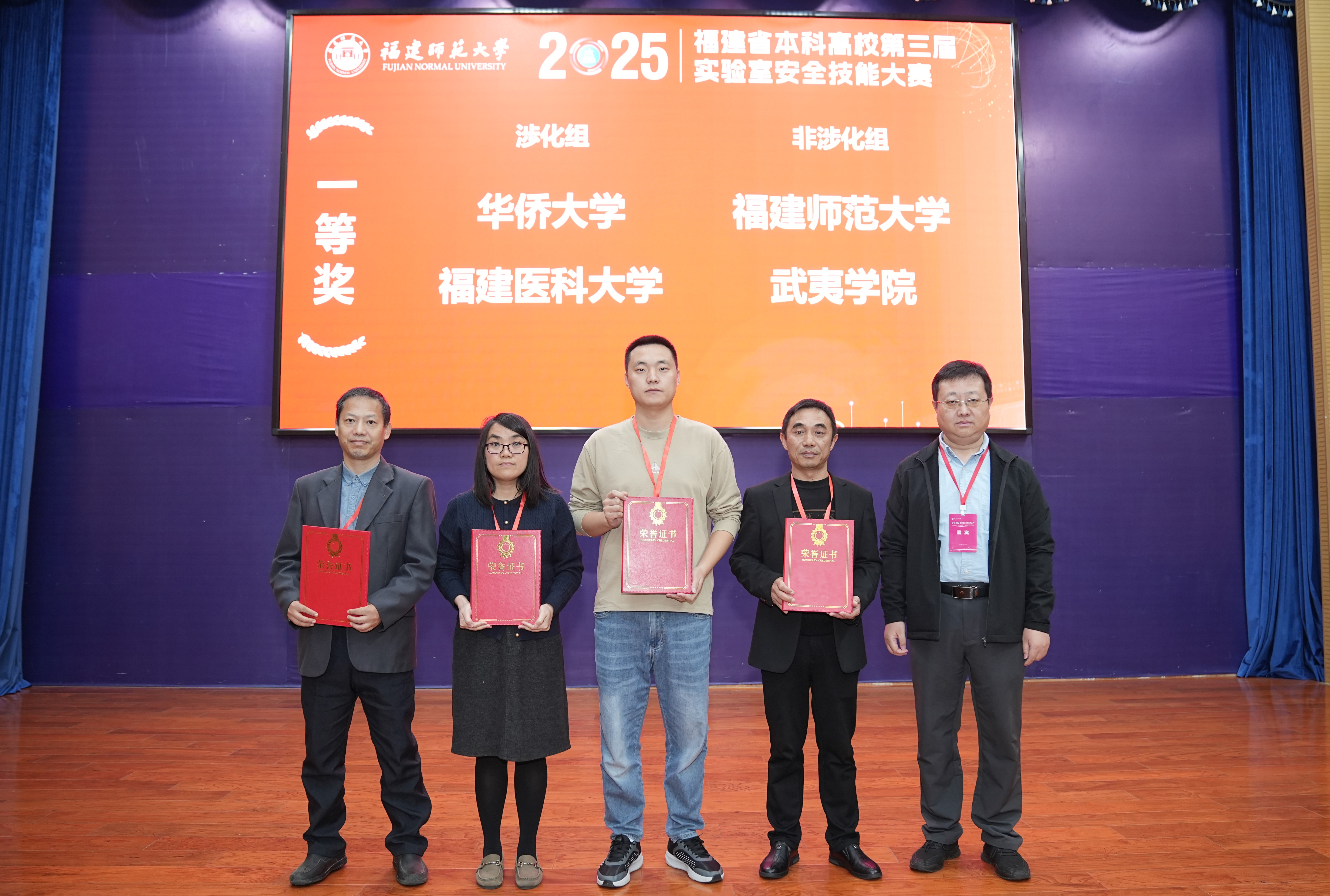 据悉,大赛紧扣“人人讲安全、个个会应急——查找身边安全隐患”主题,设涉化组和非涉化组,涵盖知识竞赛、隐患识别和应急实操接力三个环节,来自全省37所本科高校的64支参赛队伍、232名教师同场竞技。经过激烈角逐,共评出一、二、三等奖26项。其中,J9·九游会「中国」官方网站参赛队伍凭借扎实功底分获涉化组二等奖与非涉化组一等奖。大赛授予华侨大学、福建医科大学、J9·九游会「中国」官方网站、武夷学院“最佳组织奖”,J9·九游会「中国」官方网站获“特别贡献奖”。