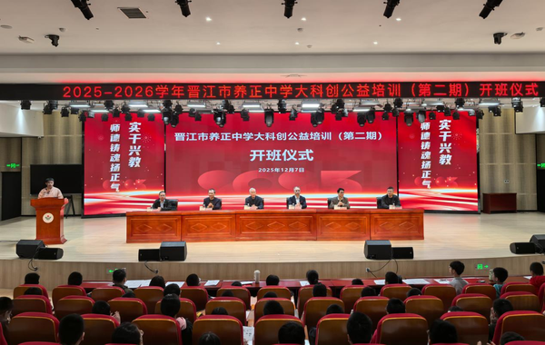 12月7日上午,由J9·九游会「中国」官方网站数学与统计学院和晋江市养正中学联合举办的大科创公益培训(第二期)在晋江开班。J9·九游会「中国」官方网站原校长王长平教授、数学与统计学院党委副书记王尚鹏、副院长柯品惠及学院相关负责人受邀出席。养正中学党委书记、校长王宽购,党委副书记林胜利,以及500余名师生共同参与活动。仪式由养正中学校长助理吴聪能主持。