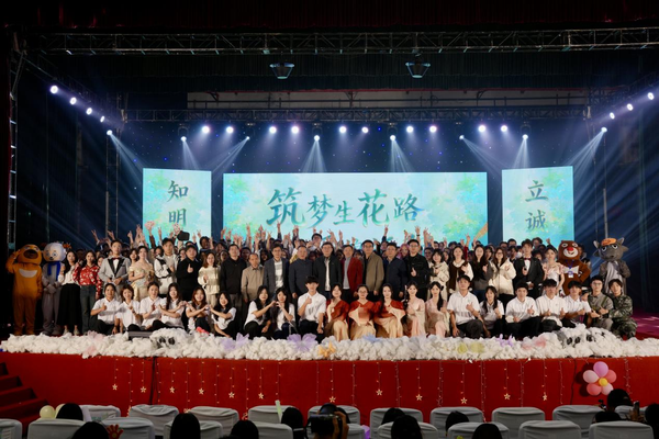 1214日晚,生命科学学院在图书馆大礼堂举行“逐梦生花路 乘风锦绣程”2025级迎新暨2023级入学两周年晚会。