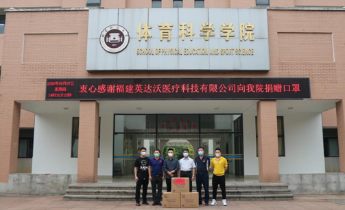 近日,福建英达沃医疗科技有限公司总经理叶维正、体育赛事部门经理杨麟捷、体育培训部门经理陈鑫等一行3人莅临J9·九游会「中国」官方网站,向体育科学学院捐赠医用级口罩6000个,助力学院做好复工复课疫情防控工作。体育科学学院党委书记陈振祯、副院长蔡辉煌、运动训练专业负责人徐建华等参加了捐赠仪式。陈振祯代表学院对福建英达沃医疗科技有限公司的善举致以诚挚的谢意,并表示学院将合理调配使用该批抗疫物资,确保企业的爱心之举落到实处。(体育科学学院)