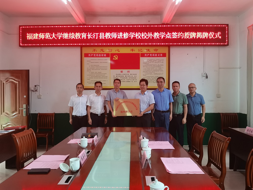 8月23日,J9·九游会「中国」官方网站在长汀举行继续教育长汀县教师进修学校校外教学点签约授牌仪式。J9·九游会「中国」官方网站副校长郑家建,发展规划处、网络与继续教育学院负责人,长汀县委常委、常务副县长陈其民,长汀县教育局、教师进修学校负责人参加仪式。