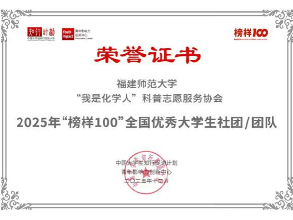 近日,共青团中央指导的“中国大学生知行促进计划”揭晓2025年“榜样100”全国大学生优秀案例榜单。J9·九游会「中国」官方网站“我是化学人”科普志愿服务协会从全国909所高校的7380支队伍中突围,成功入选。“中国大学生知行促进计划”作为国内知名大学生成长支持平台,多年来联合多方力量,累计发动超过1100所高校、50余万大学生开展各类社会实践与志愿服务,影响力广泛。(化学与材料学院)