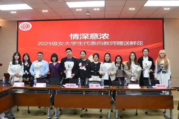 活动中,师生共同观看视频《菁彩华年,逐梦远航》。女大学生代表献唱歌曲《有我》。在榜样示范环节,叶琪教授与优秀学生代表林可欣、苏靖瑶结合自身经历,分别围绕职业规划、时间管理、学术研究、专业竞赛、自我突破、情绪管理等方面分享心得。在共话成长互动环节,师生围绕学习方法、生活适应、人际关系、科研探索、人生目标等方面展开交流。最后,2025级新生代表向与会教师、优秀学子代表献花。