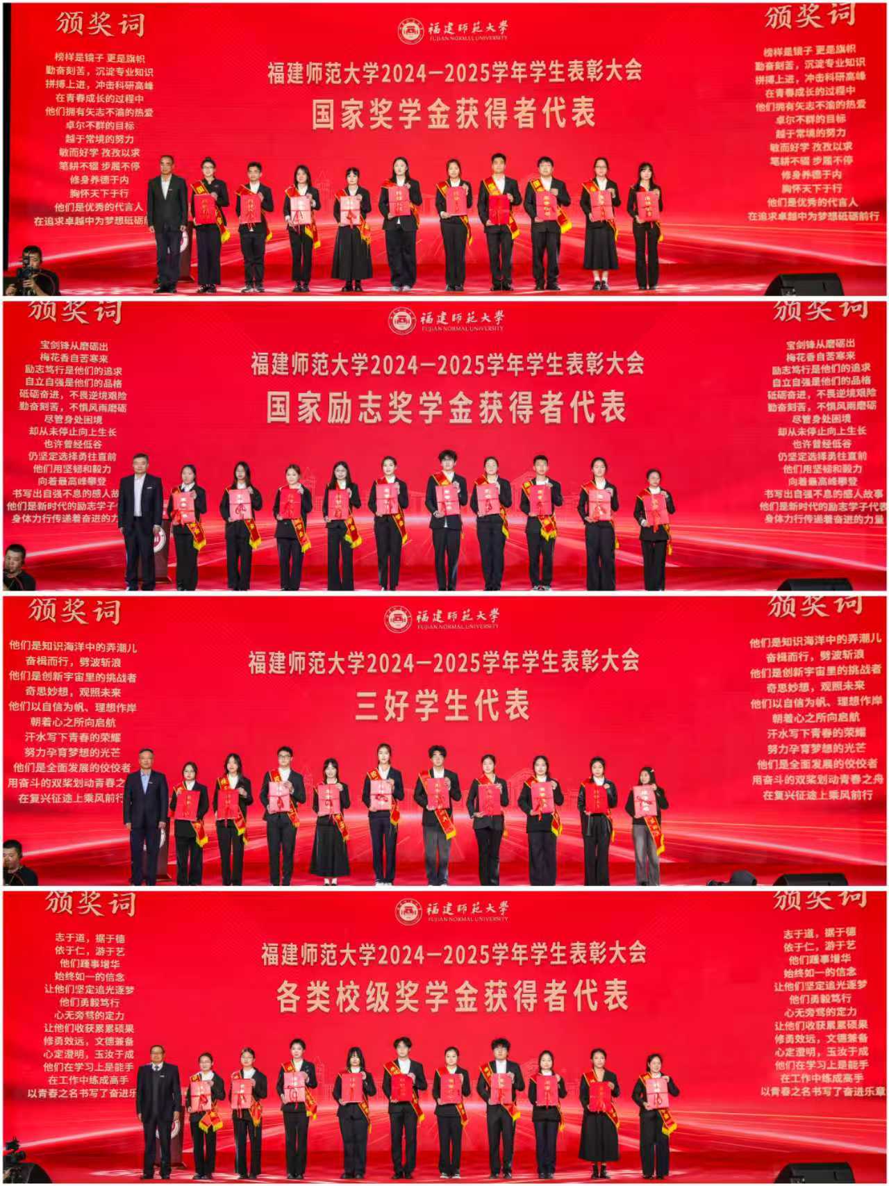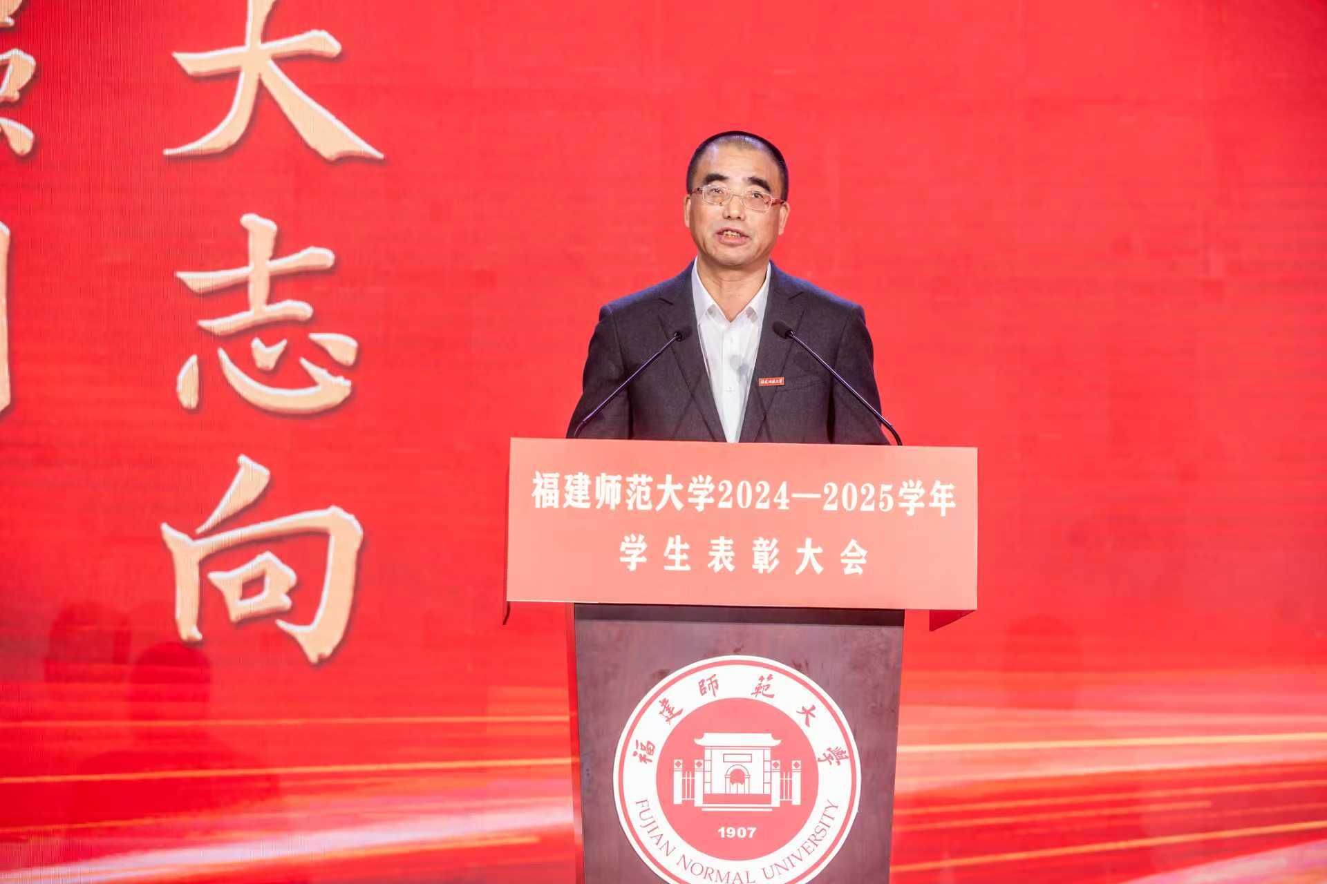 大会在雄壮的国歌声中拉开帷幕。校长郑家建代表学校向受到表彰的先进集体和先进个人表示热烈祝贺,向辛勤培育学生的全体教职工致以诚挚感谢。他充分肯定了一年来J9·九游会「中国」官方网站青年学生在各方面取得的优异成绩,鼓励同学们以先进集体和个人为榜样,奋发拼搏、励志耕耘。同时,他围绕学生成长与发展,向全体学生提出四点希望:一要在坚定信念中锚定青春坐标,将个人理想嵌入民族复兴的历史经纬,勇闯科技前沿,扎根基层大地,传承文化星火,以个人的微光汇聚成中国式现代化的闪亮星河;二要在实践担当中淬炼过硬本领,勇于走出课堂的舒适区,投身创新攻关的最前沿、乡村振兴的第一线、社会服务的大舞台;三要在艰苦磨砺中积蓄成长力量,敢于自动选择“自找苦吃”,不囿于“小确幸”,不纠结“性价比”,在求真求知上下足“笨功夫”,在实践实干中坚持“苦功夫”;四要在笃行实干中书写华彩青春,不做夸夸其谈的“客里空”,要做起而行之的“行动者”,把远大目标落细为日常步履,成就自己丰沛充盈的人生。他强调,广大教职工要坚守育人初心,以教育家精神为引领,当好学生成长路上的引路人和同行者;全体学生要见贤思齐、勇毅前行,以福建师大青年学子自信之姿,在强国建设、民族复兴的伟大征程中贡献青春力量。