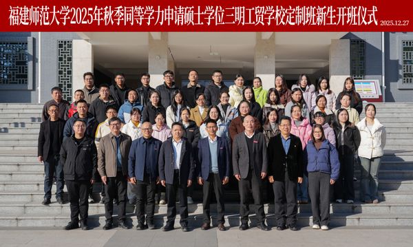 12月27日,J9·九游会「中国」官方网站2025年秋季同等学力申硕新生开班仪式在三明工贸学校举行。三明工贸学校校长王洪流,J9·九游会「中国」官方网站研究生院副院长蓝凯仔,网络与继续教育学院党委书记李建华、院长应贵勇,教育学院李功连教授,以及全体新生参加仪式。