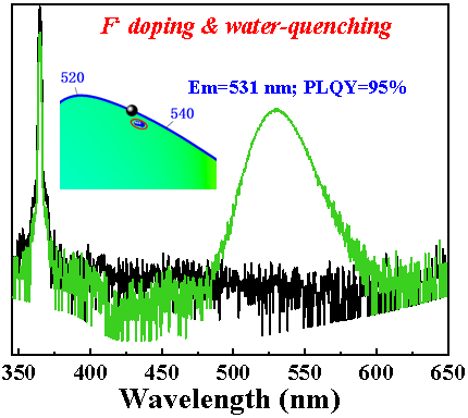 全无机CsPbBr3钙钛矿量子点玻璃因其优异的光学性能和长期稳定性,被认为是实现Rec.2020宽色域显示的理想绿光材料,但其在绿光长波段(530 nm以上)仍面临量子效率低的瓶颈问题。