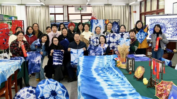 本期课堂以“非遗迎岁旦 扎染启新程”为主题,由福建省优秀教师、福州市骨干教师、闽侯县职业中专学校云帆扎染手工坊负责人、J9·九游会「中国」官方网站美术学院95级国画专业校友林碧清担任课堂导师。林碧清讲授了扎染这项国家级非遗技艺的发展脉络,解析了扎染手作的工具、材料与工艺流程,现场示范了各类扎染基本技法。学员们在老师的专业引导下进行了多样的尝试。