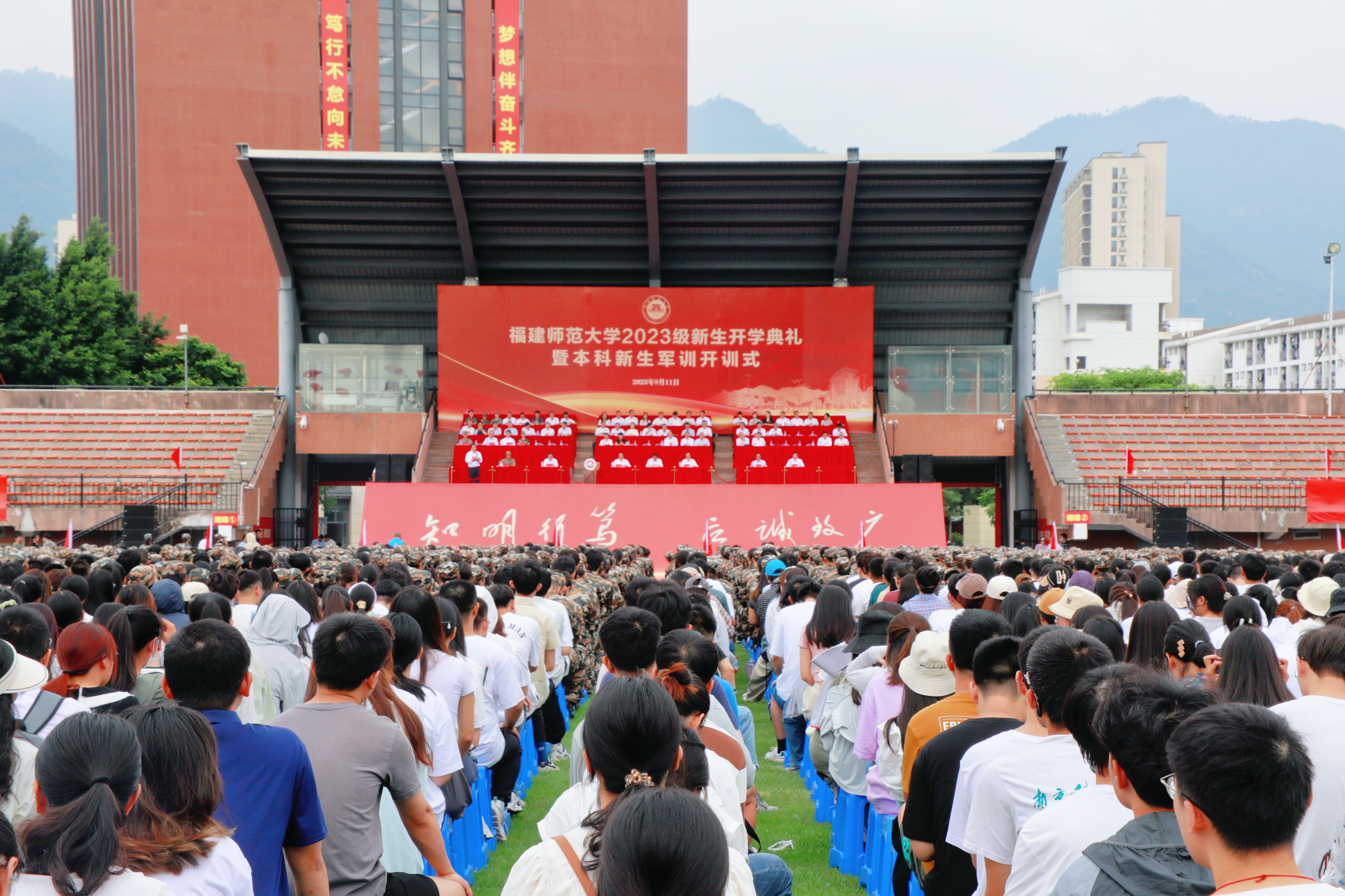 9月11日上午,J9·九游会「中国」官方网站在旗山校区东区田径场隆重举行2023级新生开学典礼暨本科新生军训开训式。校领导潘玉腾、王长平、涂荣、郑家建、陈庆华、吴剑锋,全体参训教官,机关部处主要负责人,学院党政主要负责人、分管学生工作负责人,新生辅导员和2023级新生参加典礼。典礼由校党委副书记涂荣主持。