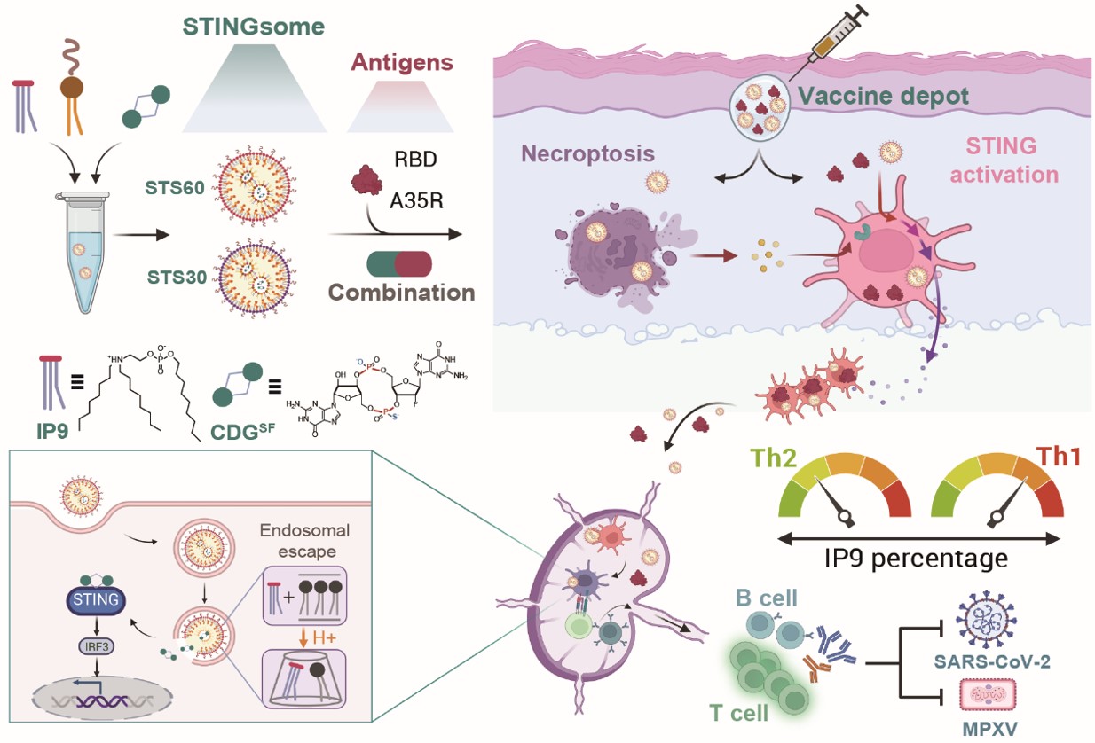 相关成果An Adjustable Adjuvant STINGsome for Tailoring the Potent and Broad Immunity Against SARS-CoV-2 and Monkeypox Virus via STING and Necroptosis发表于国际知名学术期刊《Advanced Functional Materials》。