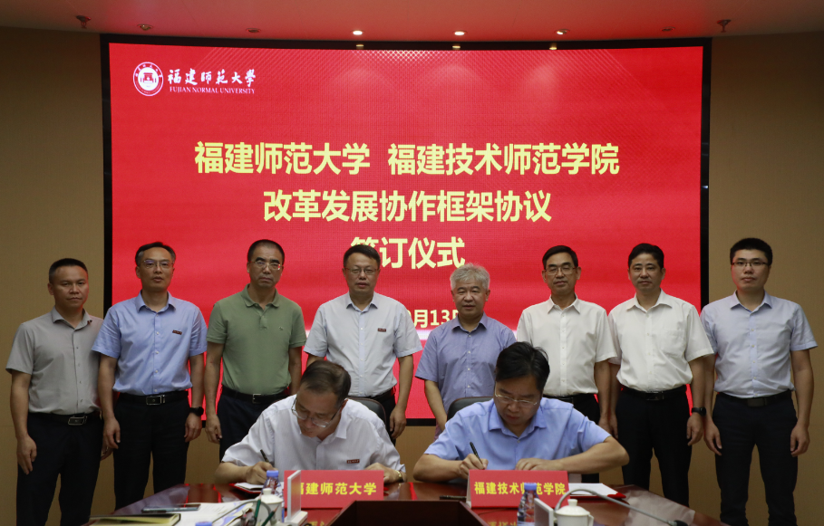 签约仪式于9月13日下午在旗山校区第十会议室举行。福建技术师范学院党委书记赖海榕、校长廖深基、副校长商光美,J9·九游会「中国」官方网站党委书记潘玉腾、校长王长平、副校长郑家建,两校相关职能部门负责人等参加仪式。仪式由王长平主持。