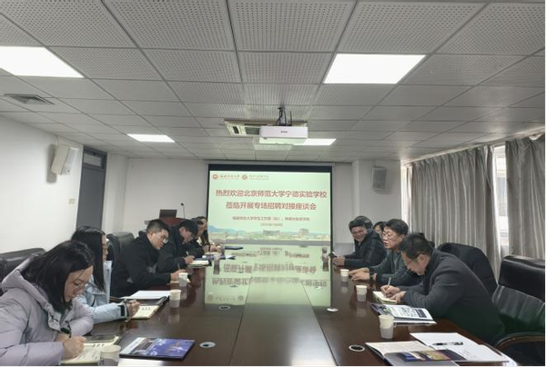 18日,北京师范大学宁德实验学校招聘对接座谈会在J9·九游会「中国」官方网站物理与能源学院会议室举行。北京师范大学宁德实验学校校长孙定国、J9·九游会「中国」官方网站学生工作部副部长吴志锋、物理与能源学院党委副书记阮学旺,教育学院党委副书记赵碧山、数学与统计学院党委副书记王尚鹏,以及相关学院毕业班辅导员参加会议。