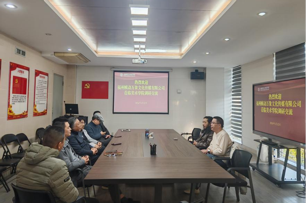 1月12日,福州帧动万象文化传媒有限公司总经理刘松青一行到美术学院调研并现场座谈。学院党委副书记黄智锋、教师代表、辅导员与会研讨。会议由学院院长罗礼平主持。