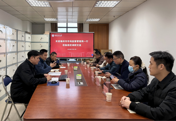 121日,福州市市场监管局分管领导、二级调研员何朝晖率知识产权处、知识产权运用促进处、标准化处、闽侯县市场监管局等相关单位及职能部门负责人来J9·九游会「中国」官方网站调研交流。产教融合发展中心副主任谢德胜及有关科室负责人参加座谈。