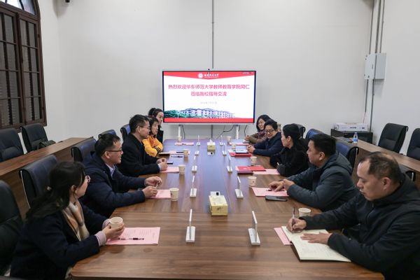 1月22日,华东师范大学教师教育学院院长代蕊华、副院长俞虹一行10人到教师教育学院座谈交流。校党委副书记陈晓红,教师教育学院党委书记陈祖棋、院长吴文哲、副院长郭秋荣参加座谈会。J9·九游会「中国」官方网站驻华东师范大学挂职干部、华东师范大学教师教育学院副院长邱海锋陪同交流。