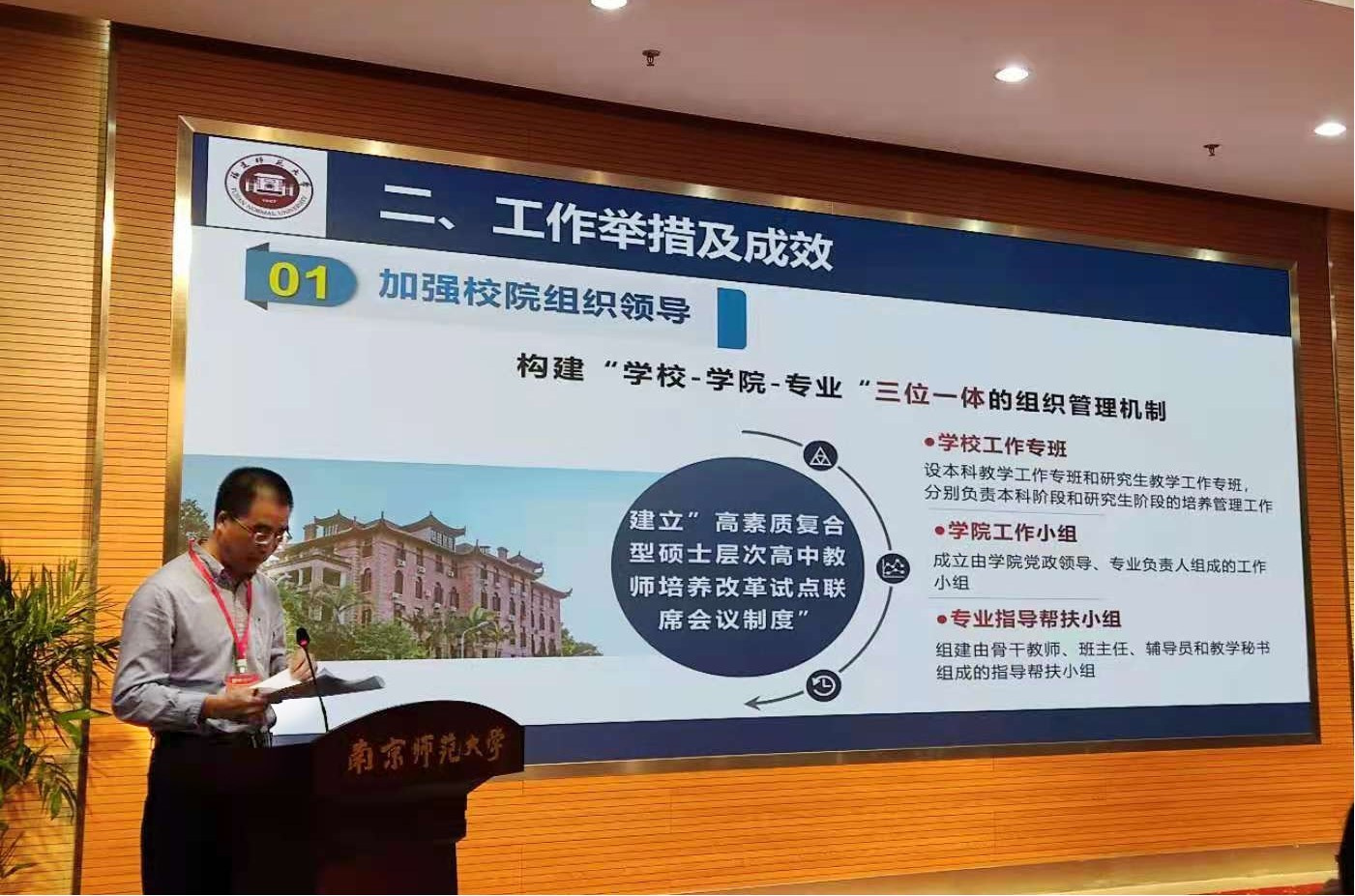 会议于10月18日在南京师范大学召开,教育部教师工作司司长任友群及相关处室负责同志,江苏、浙江、福建三省教育厅有关领导,南京师范大学、浙江师范大学、杭州师范大学及J9·九游会「中国」官方网站四所试点高校领导及相关负责人参加了会议。会议旨在总结高素质复合型硕士层次高中教师培养试点工作经验,进一步深化新时代教师教育人才培养模式改革。
