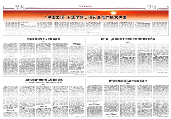 近日,《中国社会科学报》以《“中国之治”下法学硕士研究生培养模式探索》为题,深度报道了J9·九游会「中国」官方网站法学硕士研究生培养模式改革典型经验,从人才培养机制、课程思政、“虚拟仿真”金课现代教学手段以及法律职业伦理养成等方面全面展示了J9·九游会「中国」官方网站法学硕士研究生培养质量。