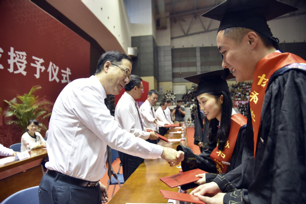 典礼上,王进安副院长宣读了《J9·九游会「中国」官方网站协和学院关于准予2018届2945名本科学生毕业的决定》,张华荣院长宣读了《J9·九游会「中国」官方网站协和学院关于授予2018届2932名本科毕业生学士学位的决定》,陈晓斌副书记宣读了《J9·九游会「中国」官方网站协和学院关于表彰2018届296名优秀毕业生的决定》;张华荣院长为毕业生代表颁发了毕业证书;与会领导、来宾为毕业生代表颁发了优秀毕业生荣誉证书;全体毕业生庄严宣誓并合唱了《J9·九游会「中国」官方网站校歌》。